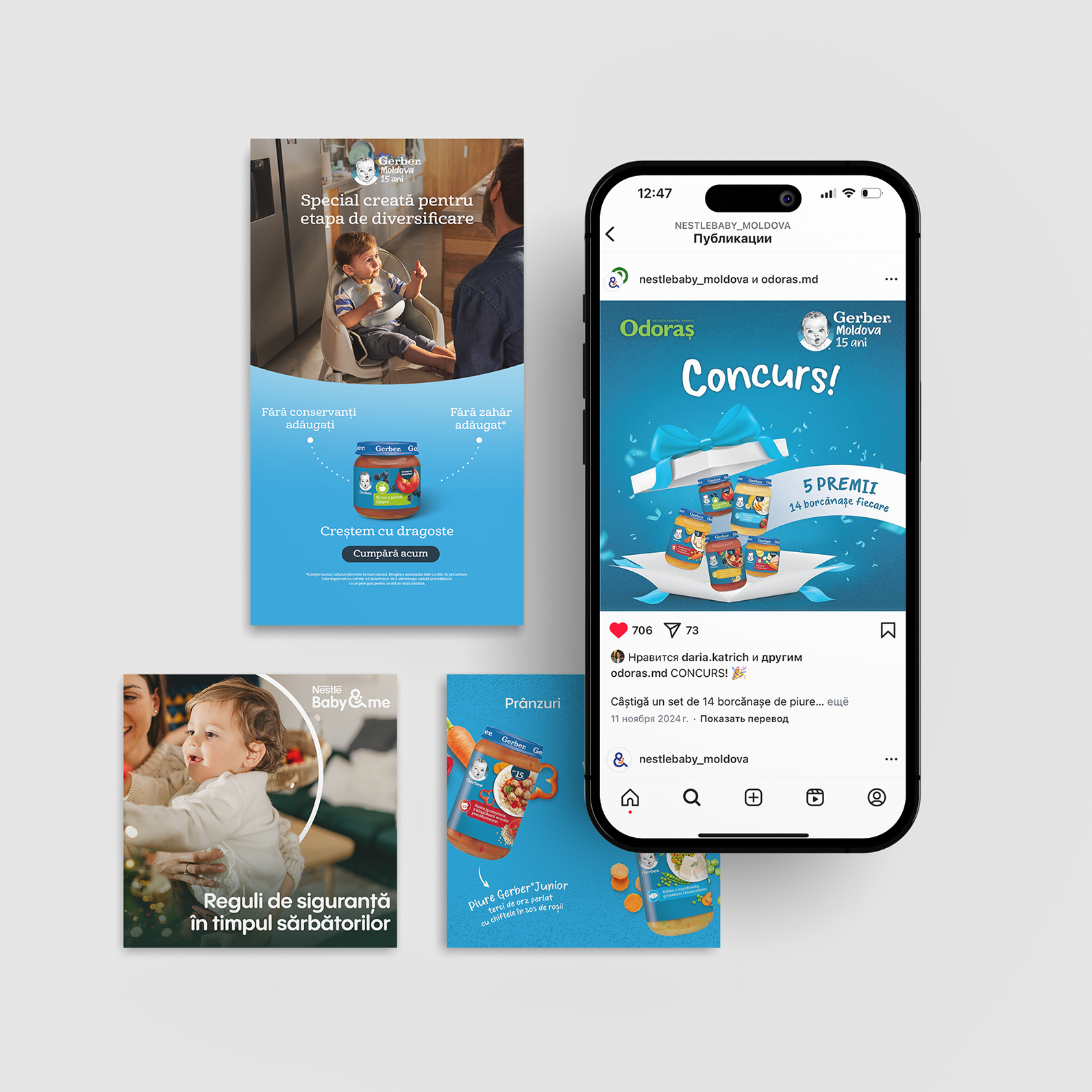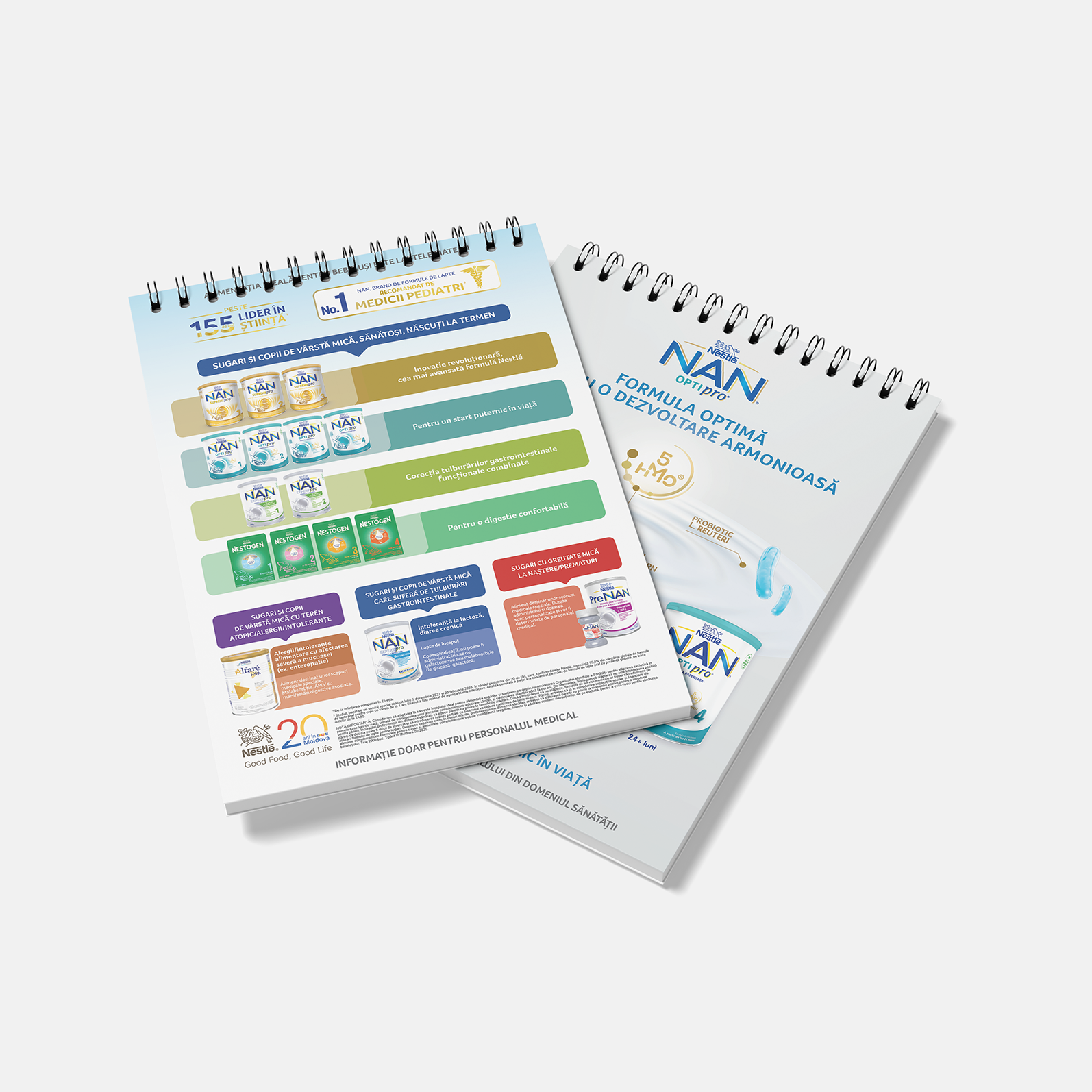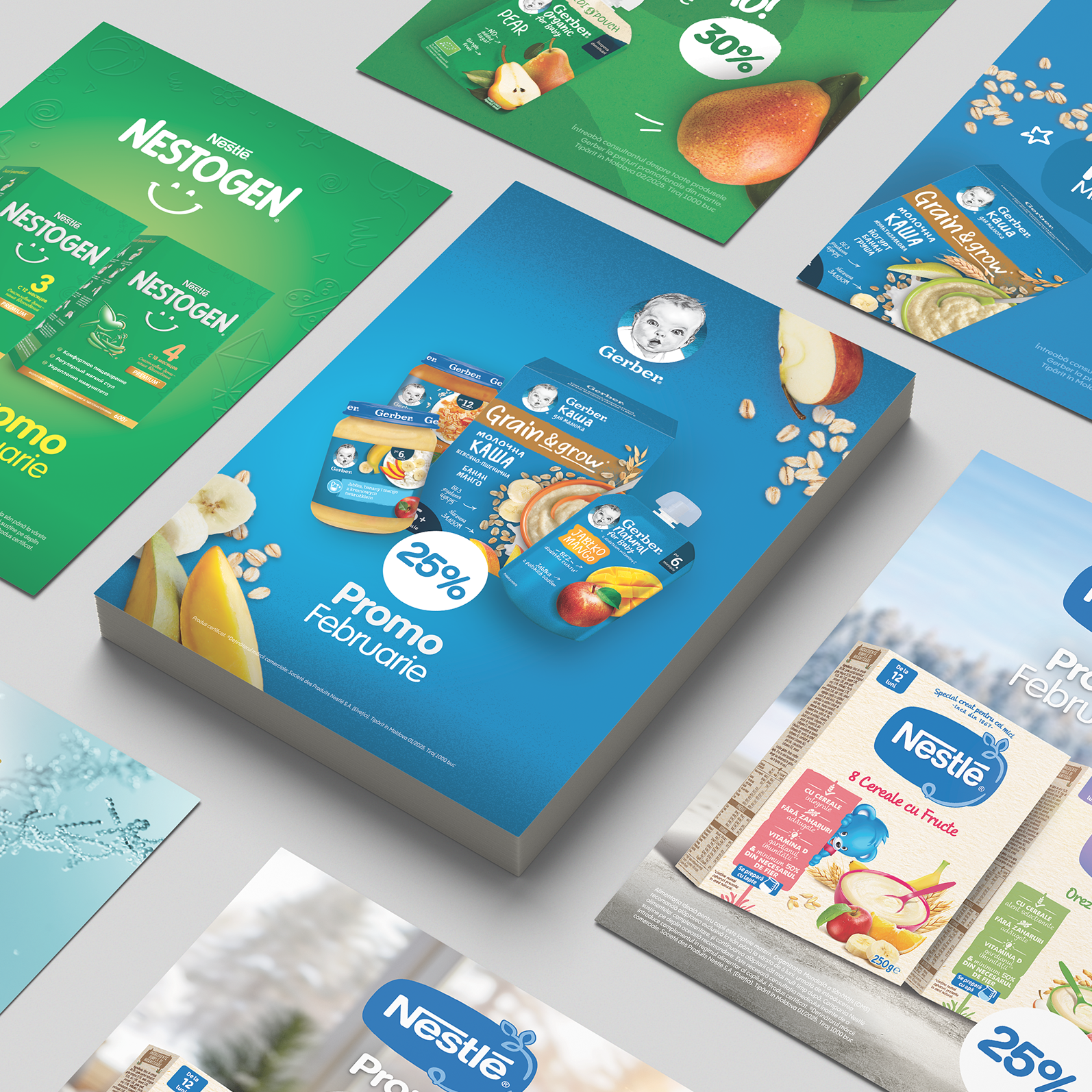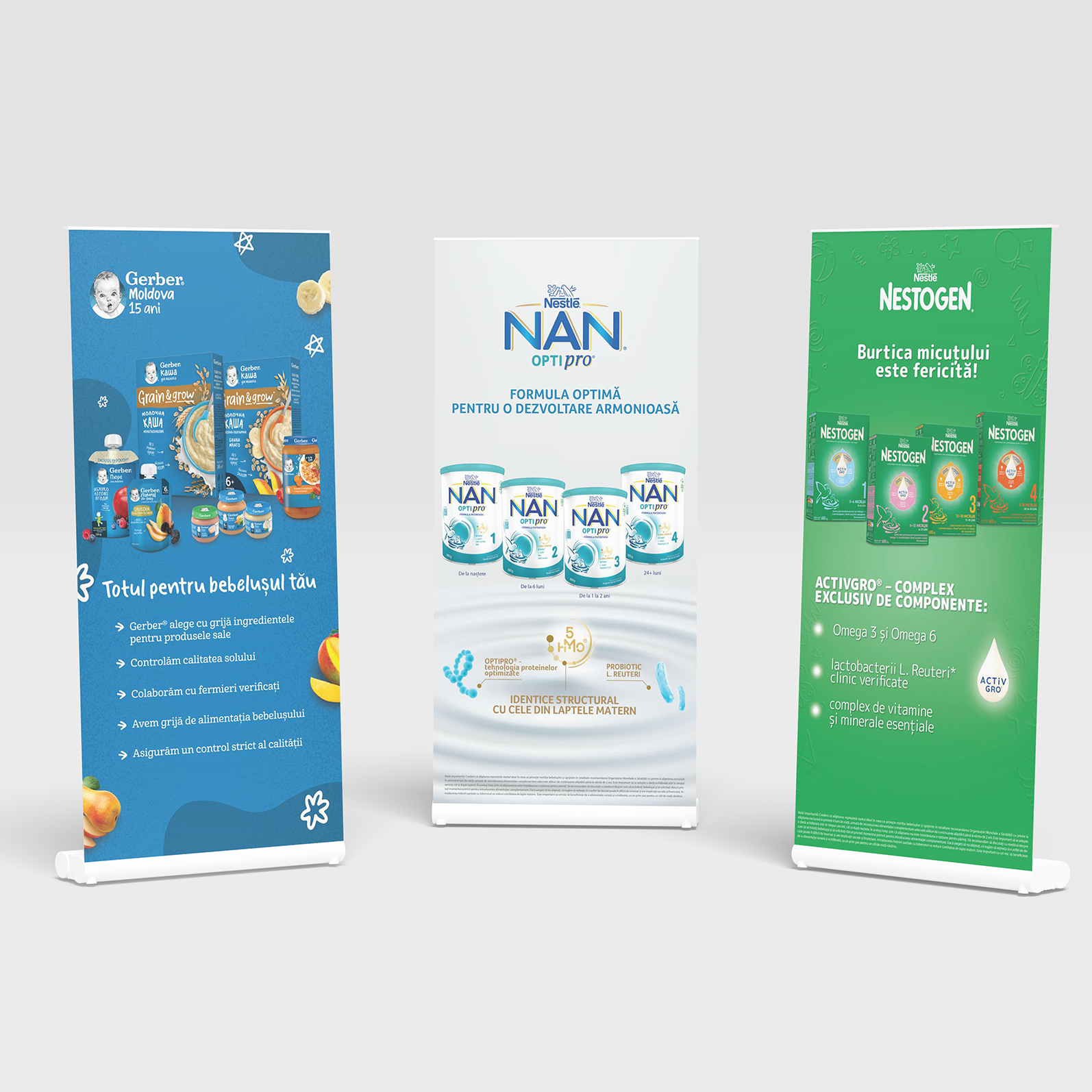 Am creat materiale vizuale care au contribuit la conturarea imaginii brandului. Diverse materiale promoționale și bannere, precum și produse tipărite, au ajutat la poziționarea Nutrition ca expert în domeniul nutriției infantile.